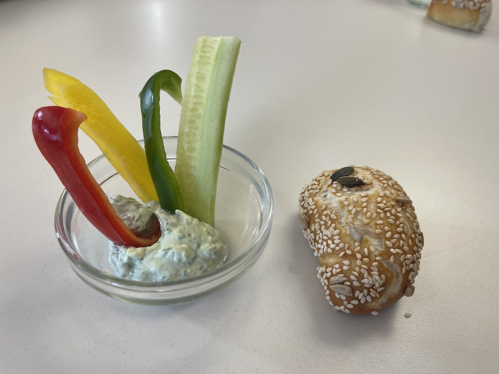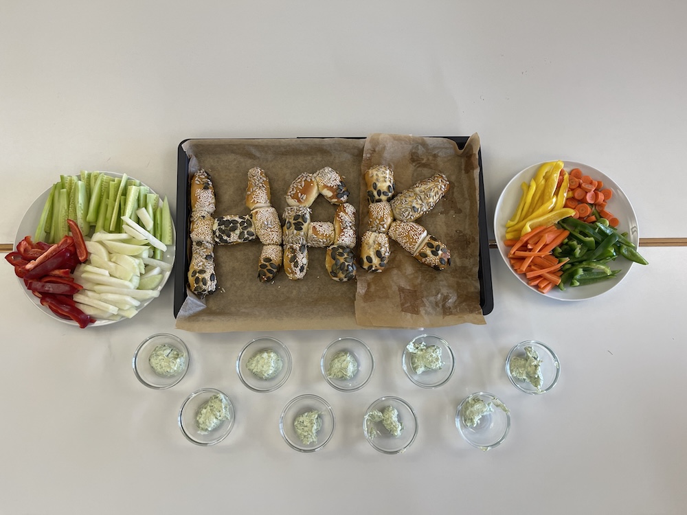 Endlich sind wir mit dem neuen Team ins Schuljahr gestartet – und wollten natürlich sofort etwas ausprobieren. Diesmal haben wir leckeres Laugengebäck-Konfekt hergestellt und dieses mit Sonnenblumenkernen, Sesam und Kürbiskernen verfeinert. Wir haben aus dem Konfekt den Schriftzug HAK gelegt, der richtig gut geworden ist. Dazu haben wir einen eigenen Frischkäse-Kräuter-Dip gemischt, den wir immer wieder probiert haben, bis er perfekt geschmeckt hat.