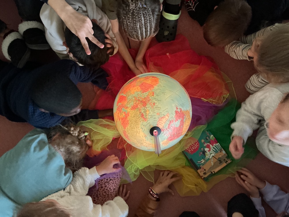Auf einer großen Europa-Karte entdeckten die Kinder außerdem die Herkunftsländer ihrer Familien. Mit großer Neugier suchten sie gemeinsam Länder, verglichen Entfernungen und stellten überrascht fest, wie international ihre Klassengemeinschaft ist.