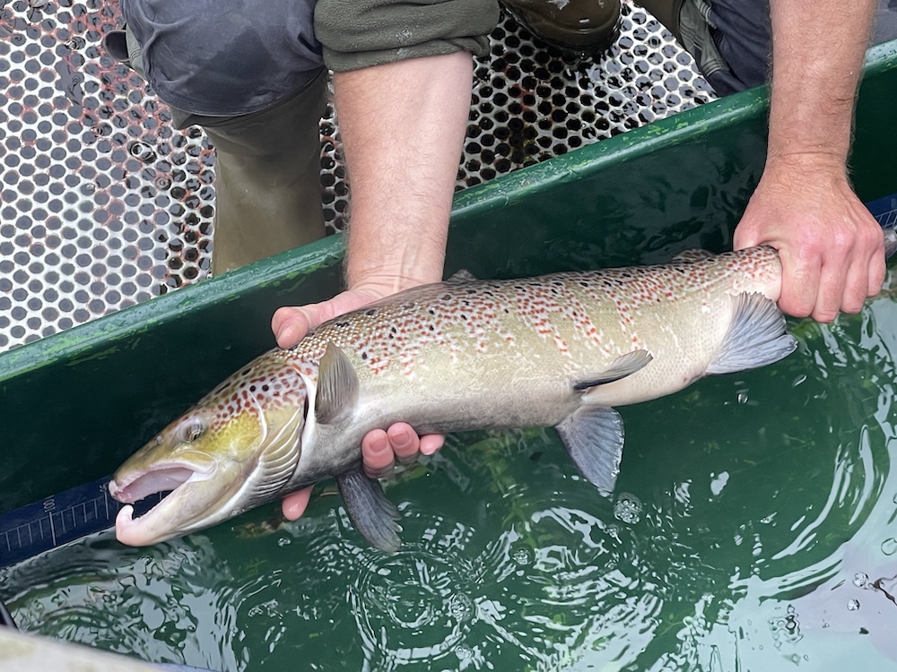 Wir hatten zusätzlich ein echtes Glücksmoment: Wir konnten einen erwachsenen männlichen Lachs und eine Nase aus direkter Nähe betrachten!