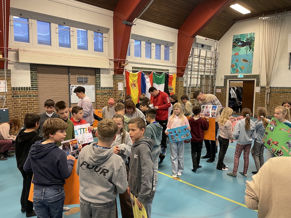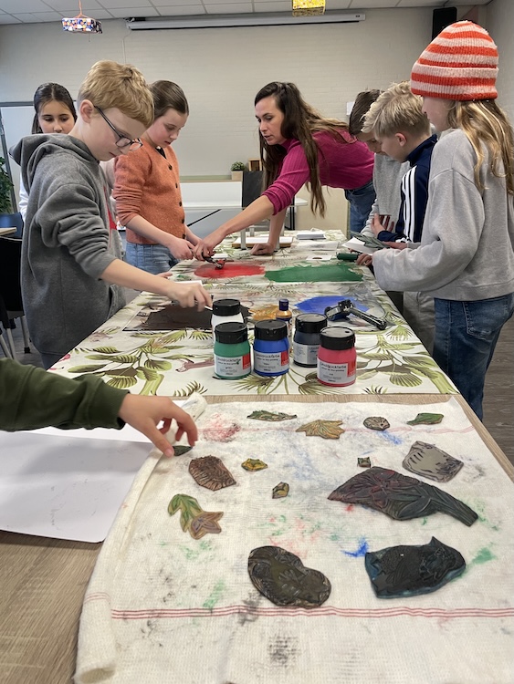In Zwolle wurden wir herzlich von unseren Gastfamilien empfangen. Nach einer langen Reise tat das erste gemeinsame Abendessen richtig gut. Am nächsten Morgen trafen sich die SchülerInnen aus Deutschland, Spanien, Italien und den Niederlanden zum ersten Mal in der Schule. Nach einer fröhlichen Begrüßung stellten alle ihre kreativen Moodboards vor und plötzlich hieß es: Let’s speak English! Unter dem Motto „Meine Familie“ lernten die Kinder die niederländische Schule und den Unterricht kennen. Vormittags gab es spannende Workshops: Linoldruck-Postkarten gestalten, Töpfern mit Ton, Arbeiten mit Holz und Parcours in der Turnhalle. Kreativität, Teamgeist und ganz viel Spaß, jeder Tag war aufregend!