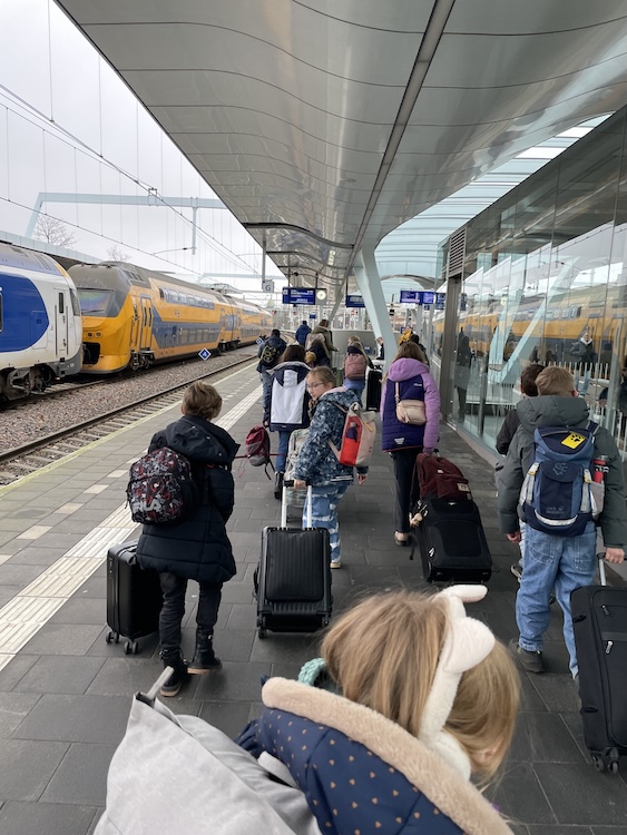 Nach einer erlebnisreichen Woche kam es zur Verabschiedung am Bahnhof Zwolle mit allen Familien. Mit Koffern voller Erinnerungen, machten wir uns auf den Rückweg. Aufgrund ausfallender Züge gestaltete sich die Reise komplizierter als gedacht. Sechsmal Umsteigen und der Verzicht auf unsere reservierten Sitzplätze machten die Fahrt zu einer echten Herausforderung, die die Kinder dennoch mit Gelassenheit hinnahmen und wir Erwachsenen auch.